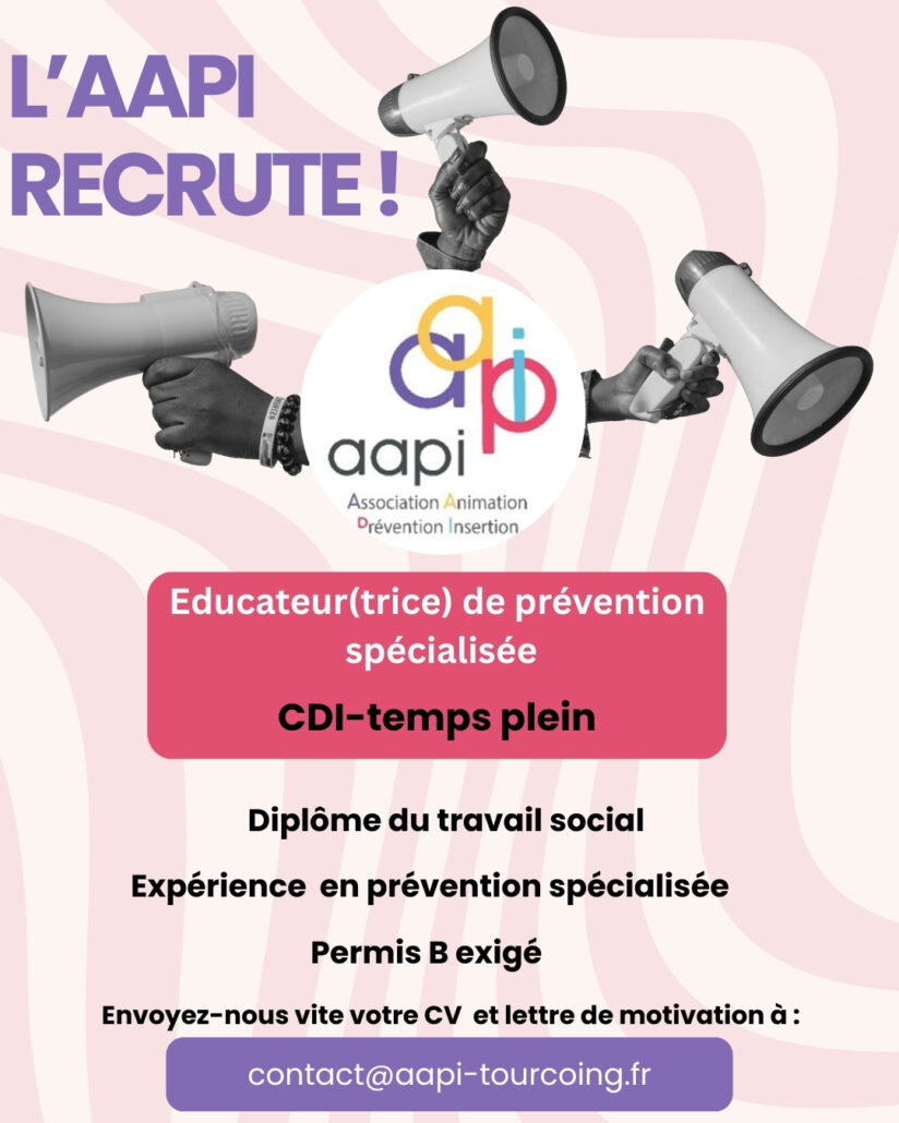Nous recherchons un(e) Éducateur(trice) de Prévention Spécialisée en CDI pour rejoindre notre équipe à Tourcoing.